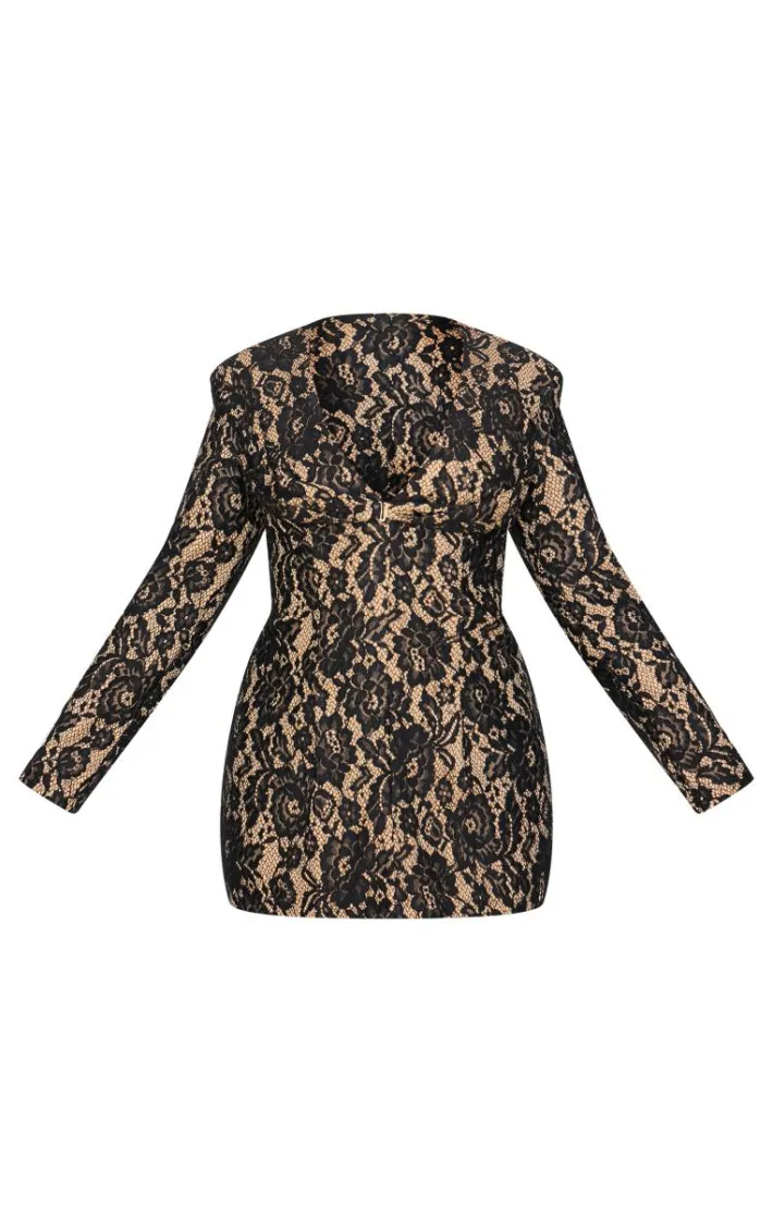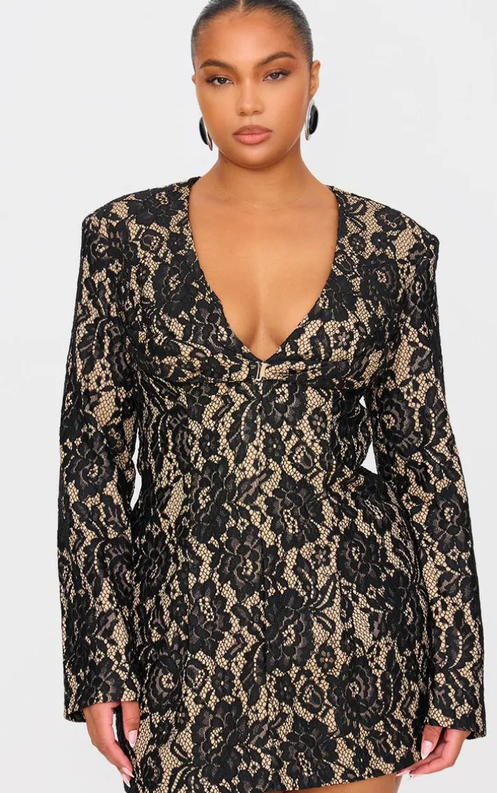 Stand out from the rest with this plus black lace plunge neck blazer dress. Brought to you in a black lace material with a plunge neck design, you are sure to be showing off your shape in this blazer dress. Team with a pair of heels and accessories to get noticed no matter what the occasion.