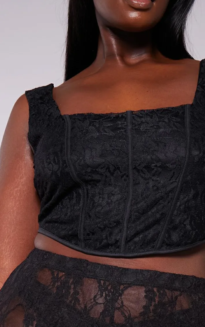 This plus black lace squared neck corset top is essential for all your weekend plans and beyond. It features a black lace material with a square neck design and a figure-flattering fit, we are in love. Just what you’ve been looking for and sure to nail the dress code, this plus corset top is ticking all the boxes. Team with the matching pants and your fave accessories to elevate the look.