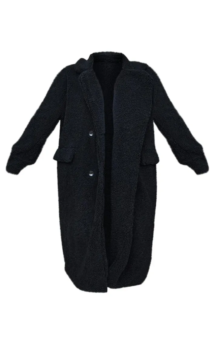 We are loving this puffer jacket for your new season wardrobe. Featuring a black borg material with a longline design, it’s perfect. We are loving this styled with a grey jumpsuit, a black clutch bag and chunky kicks.