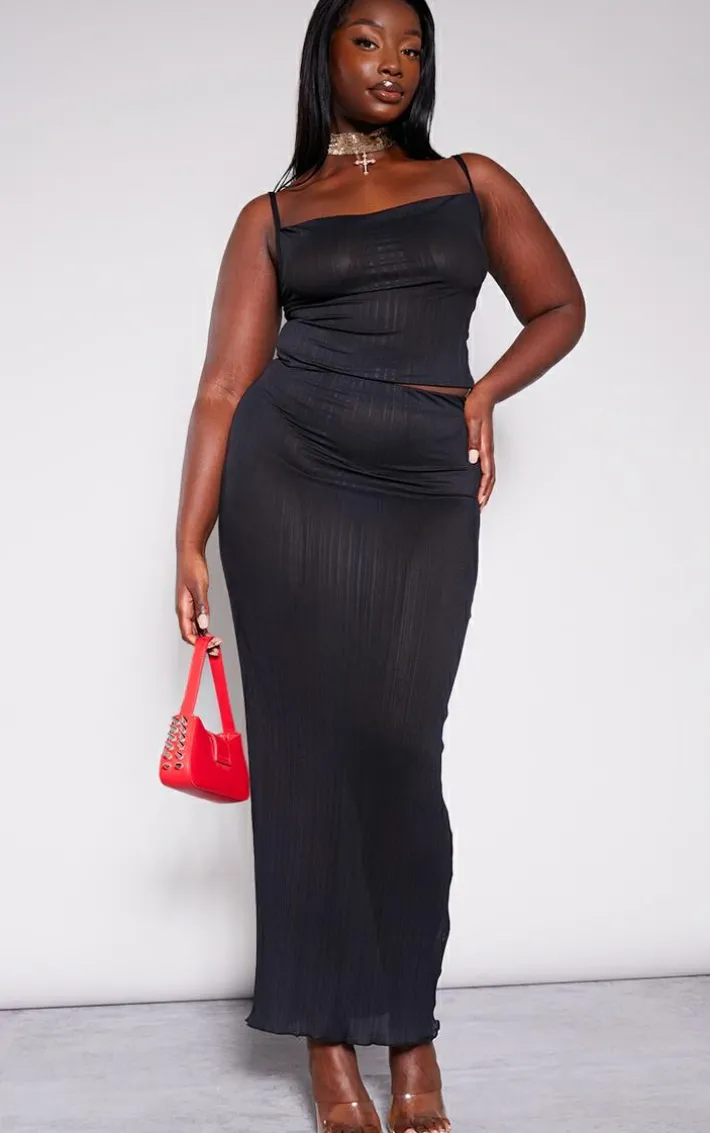 We’re all about the glam vibes this season and this plus black mesh maxi skirt will have you showing off your confident side. It features a black mesh material with a maxi length and a figure-worshipping fit, what more could you ask for? Style this plus maxi skirt with your fave top, heels and a statement hue mini bag for a dreamy date night look.