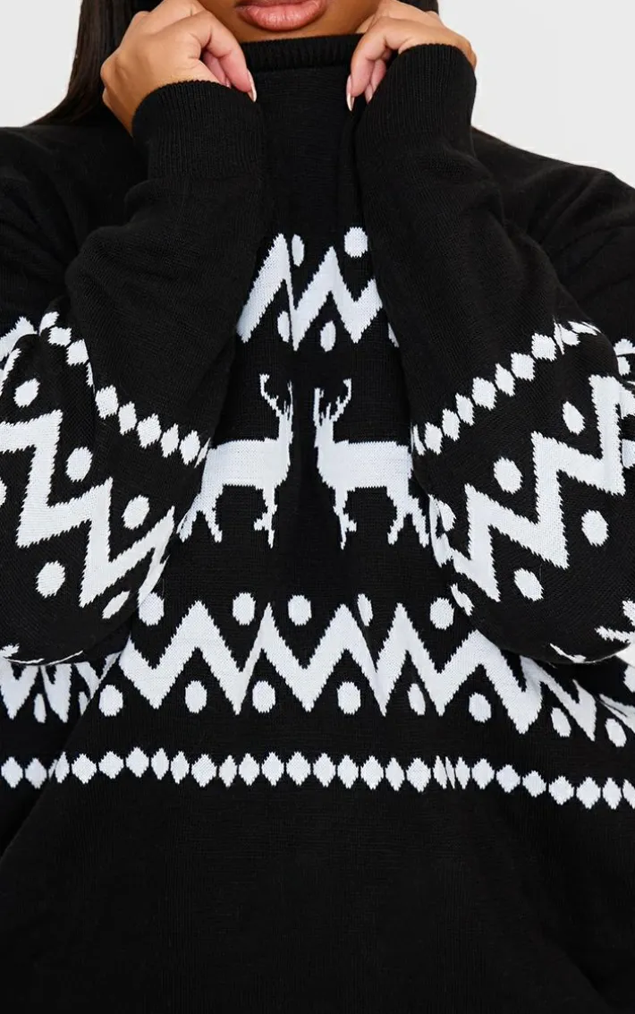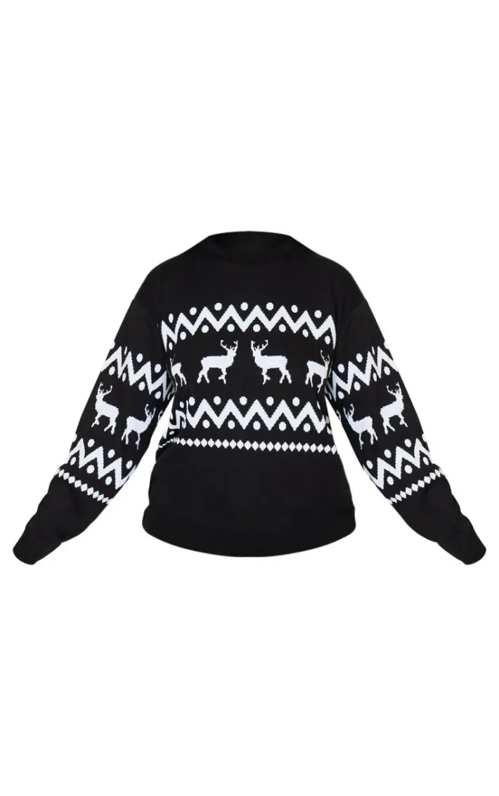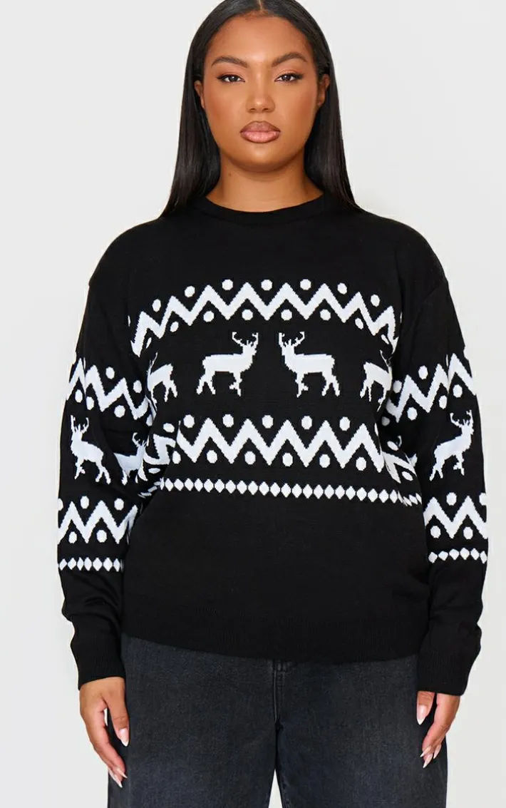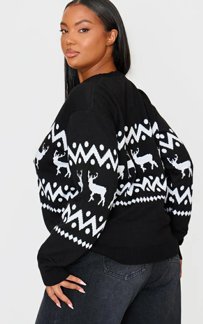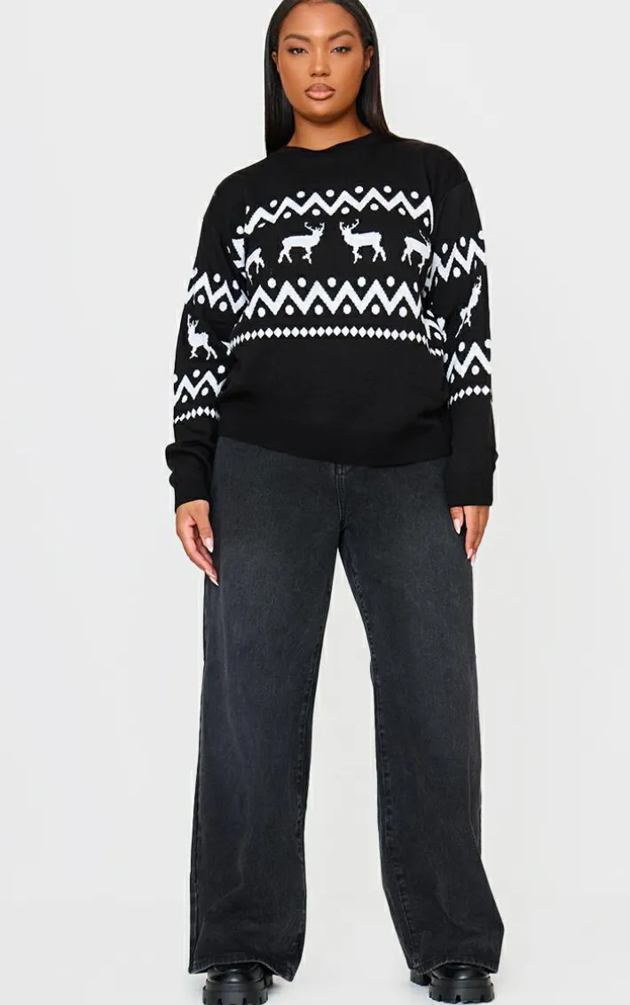 Enter the festive season in style with this plus black oversized fairisle panel oversized sweater. Brought to you in a black hue material with a fairisle panel design and an oversized fit, what’s not to love? This plus Christmas sweater means you can join in with the festive cheer and not compromise your style game. Simply add denim jeans and chunky sneakers for the ultimate Christmas day ‘fit.