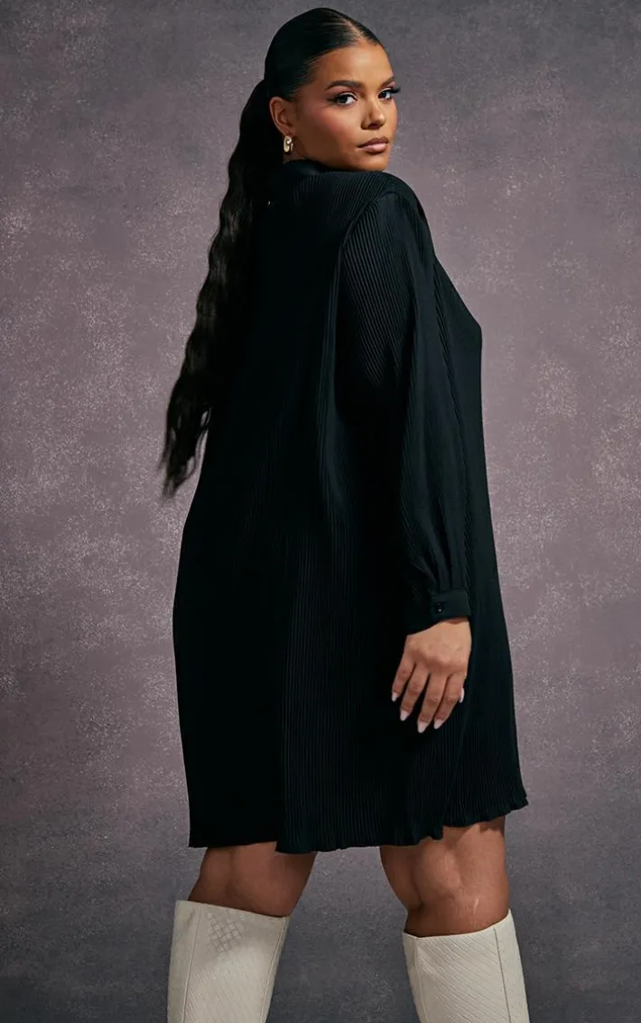 This plus black plisse oversized shirt dress is sure to be a staple in your new season collection. It features a black plisse material with a relaxed fit, what more could you need? It’s giving off major glam vibes and we can’t get enough. For the perfect weekend combo wear with knee high boots, statement accessories and a shoulder bag for a look that is sure to get everyone talking.