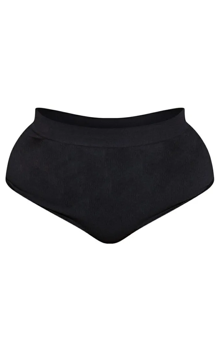 Hit refresh on your lingerie collection with these must have bottoms. Featuring a black seamless material with a high waist design and flattering fit, we are obsessed. Wear with the matching top and accessories to seal the deal.