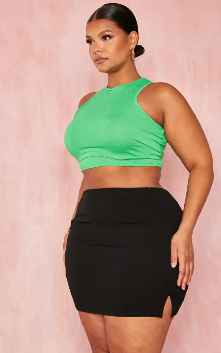 Be weekend ready with this mini skirt. Featuring a black material with a side split design and a mini length, we’re obsessed. Add a green crop top, a blue oversized shirt, bag and high feels for a look that will earn all the likes.