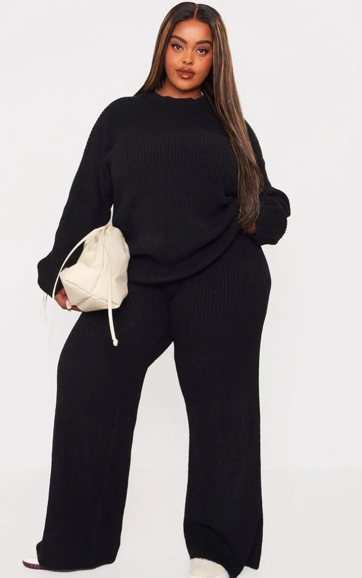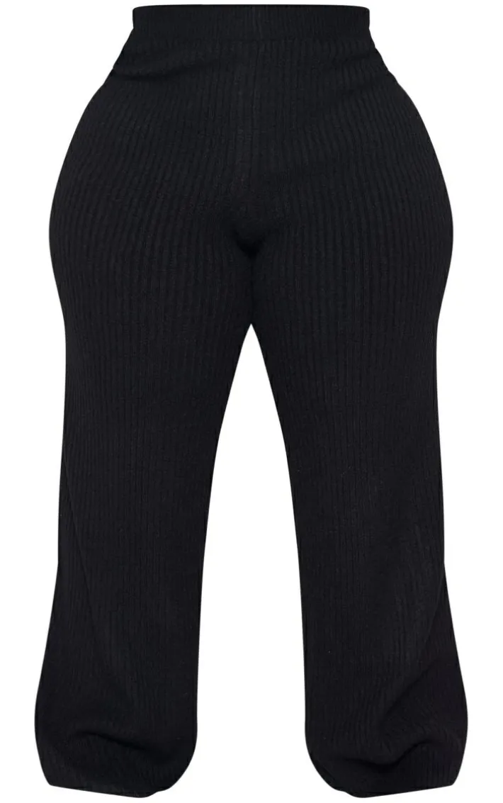 Your new season wardrobe wouldn’t be complete without these plus black soft rib knit pants. Made using a black soft rib knit material with a comfy fit, these plus pants are the perfect versatile piece you’ll be reaching for again and again. Pair with the matching top, sneakers and a clutch bag for an instant chic finish.