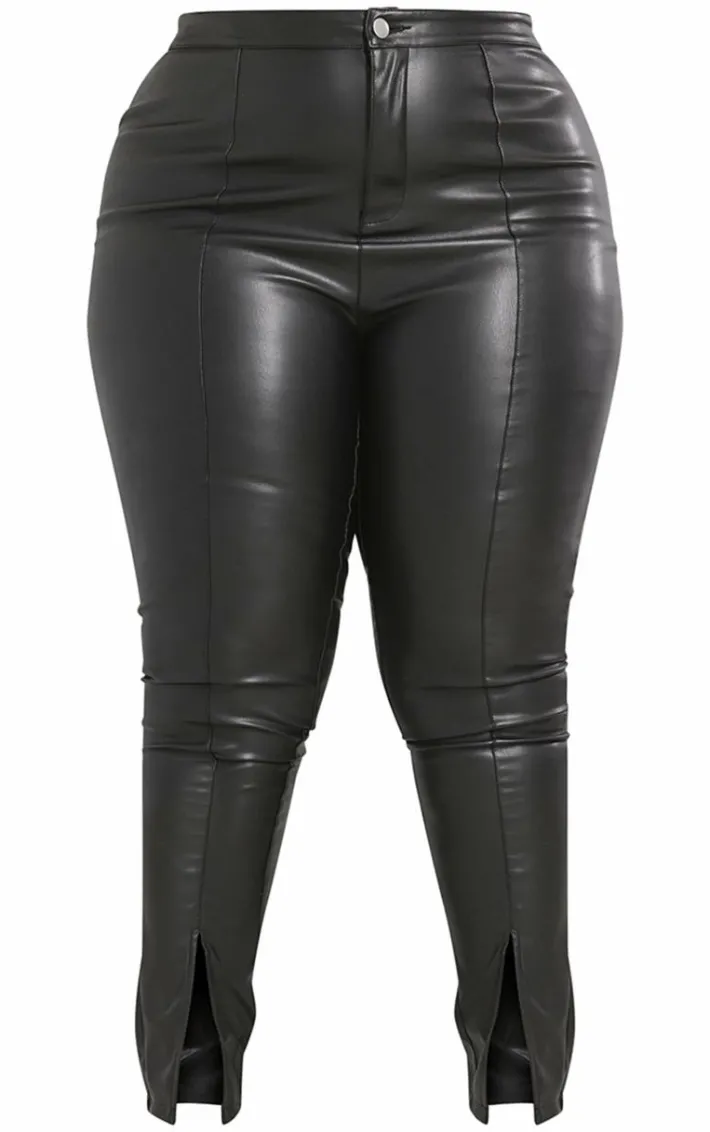 Give your new season style an edge with these bottoms. Featuring a black faux leather material with a skinny fit and split hems, we’re obsessed. Style with a crop top, heels, and matching blazer for a seriously chic vibe.