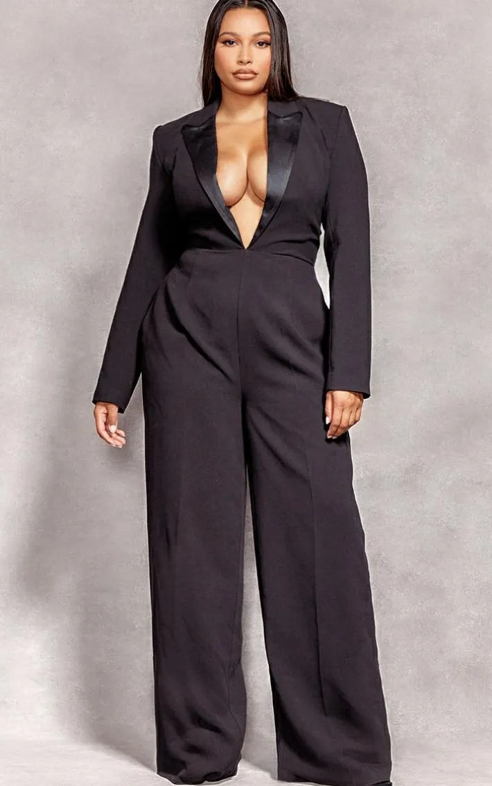 Get your glam on this weekend with this plus black tailored satin lapel straight leg jumpsuit. Its black satin material is seriously chic and its tailored fit elevates your look to new heights. This plus jumpsuit also features lapel detail which adds that extra edge, how could you say no? Whatever your plans are this weekend, just add court heels and gold accessories for a look that will gain all the compliments and nail that fiercely feminine vibe.
