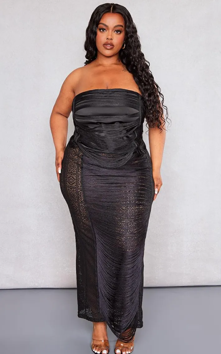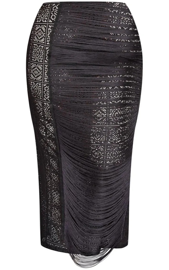 This plus black tassel crochet maxi skirt is sure to add some drama to your new season wardrobe. Brought to you in a black crochet material with a tassel design that won’t let you go unnoticed. This unreal skirt has a maxi length that will bring all the chic vibes to your wardrobe. Why not team with a bandeau top and some clear heels for a glam finish that will have you feeling confident this season and beyond.