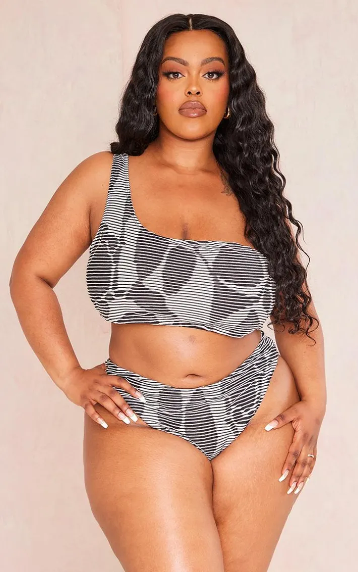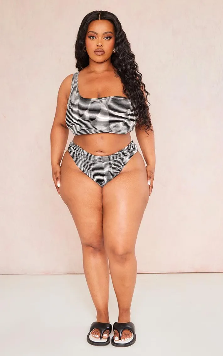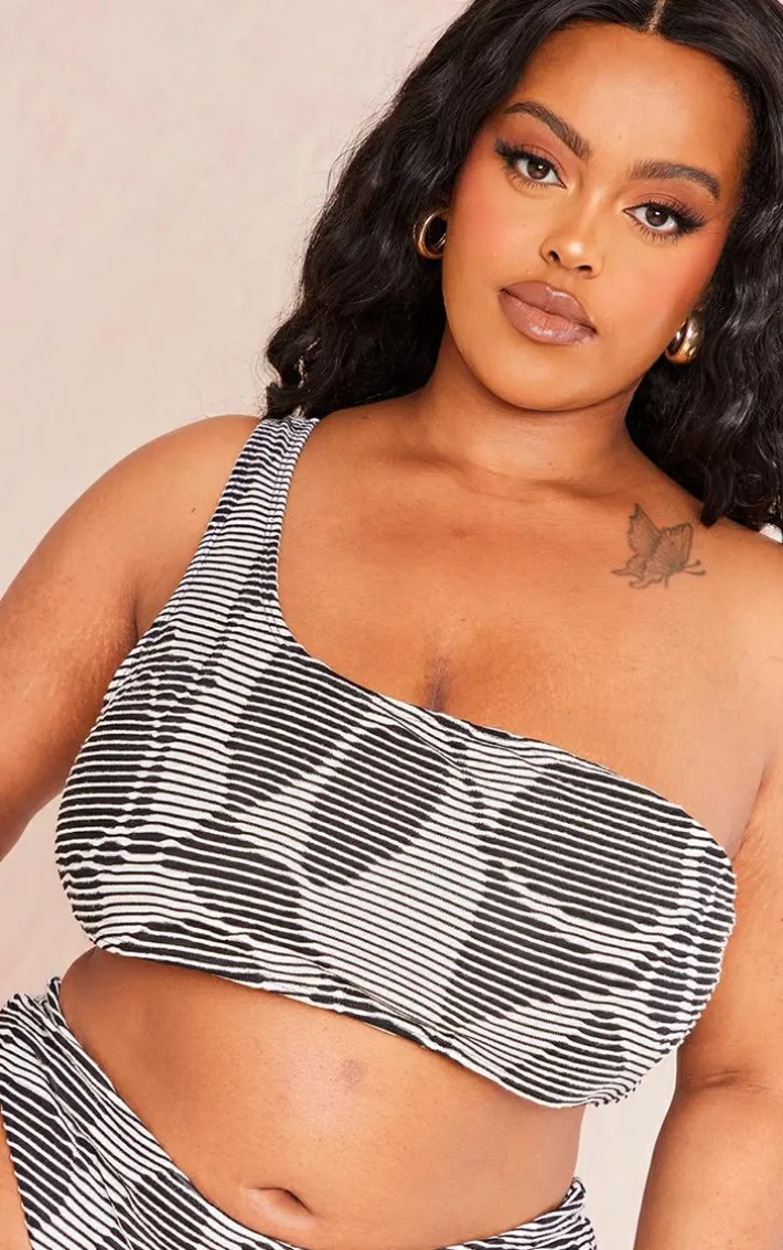 Bring all the chic vibes to your vacay wardrobe with this plus black textured one shoulder bikini top. Brought to you in a black hue textured material with a one shoulder design, what more could you need? We are loving this plus bikini top styled with the matching bottoms and statement accessories for a poolside or beach look that is sure to have eyes on you for all the right reasons.