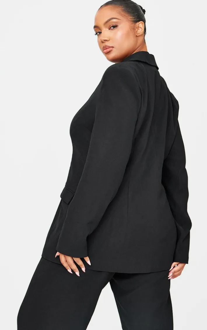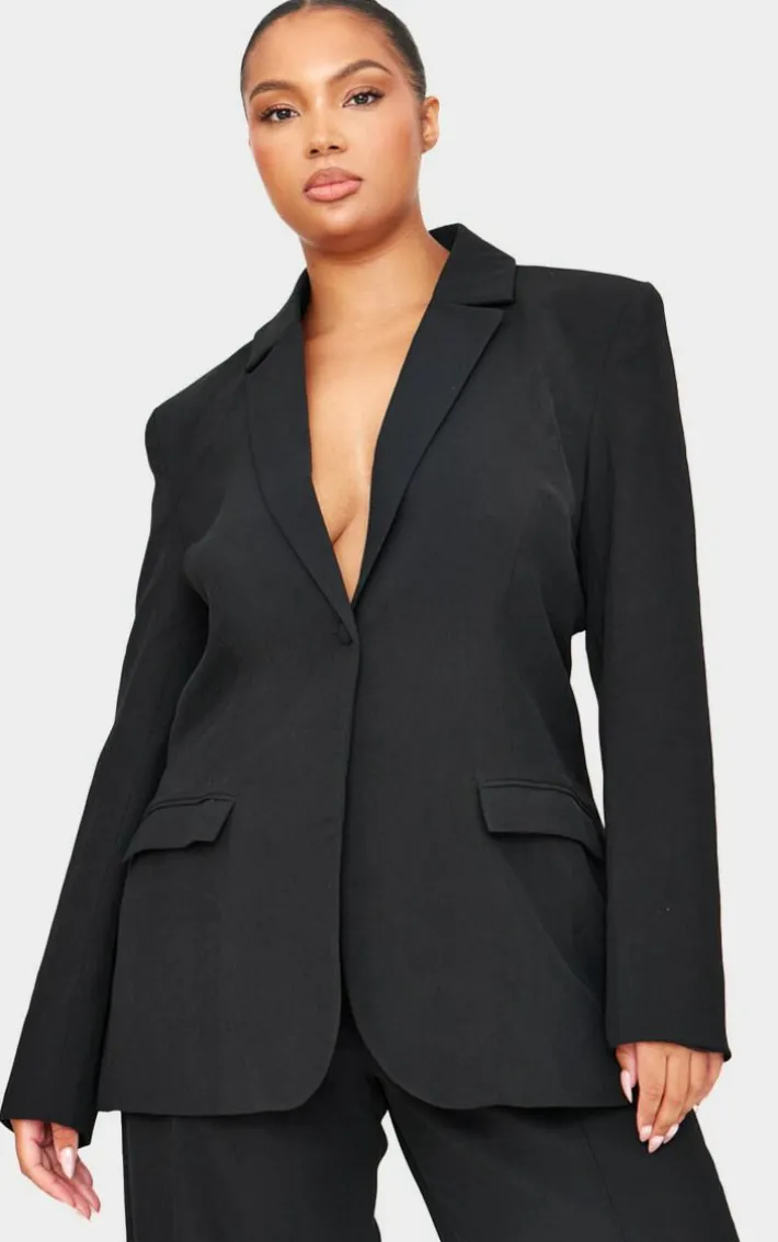 Make styling easy for those throw on and go moments in this plus black woven fitted premium blazer. Brought to you in a black hue woven material with a fitted design, this premium blazer is all the new you need. Pair with black wide leg pants, slip on heels and simple accessories for a chic finish.