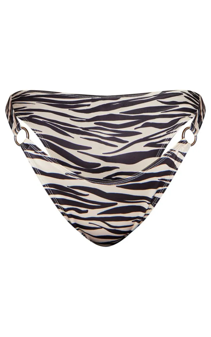 Amp up your poolside look with these plus black zebra printed tie bikini bottoms. Brought to you in a black hue material with a zebra print design and tie detailing, how can you resist? Style these zebra print bikini bottoms seamlessly with the matching bikini top and why not add the matching sarong for a vacay look that is guaranteed to steal all the stares?