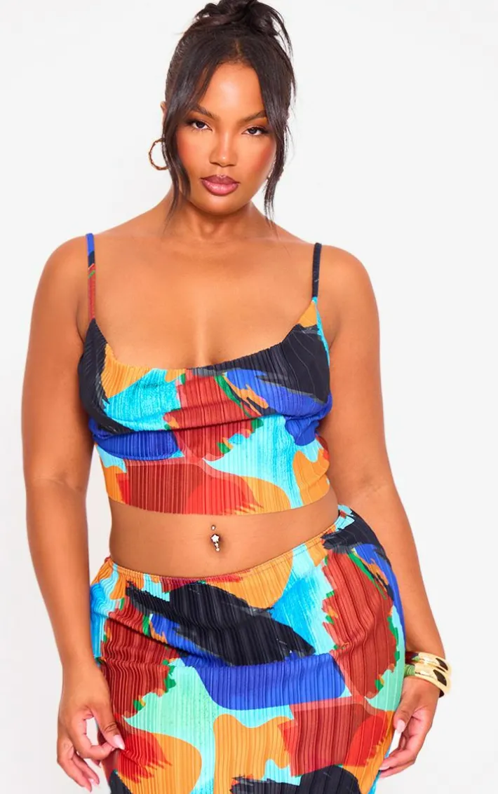 Stand out from the crowd this season in this plus blue abstract print plisse strappy cowl neck top. Brought to you in a blue hue abstract print plisse material with a strappy design and cowl neckline, what’s not to love? Style this top with the matching skirt, leopard print heels and gold accessories for a bold combo we’re crushing on.