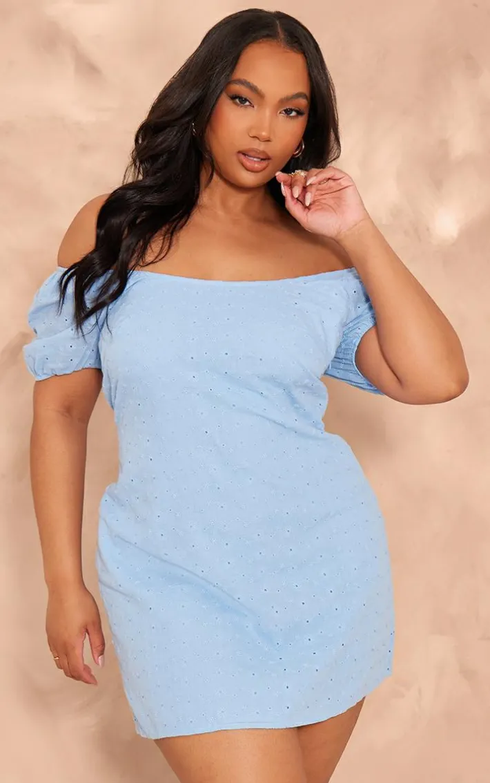 Enter the new season in style with this plus broderie lace detail mini dress. Brought to you in a dreamy blue hue material with broderie lace detailing, a bardot neckline and a mini fit, how can you not fall in love? Style this mini dress with sandals, sunglasses and simple gold accessories for a look that is sure to have all eyes on you.