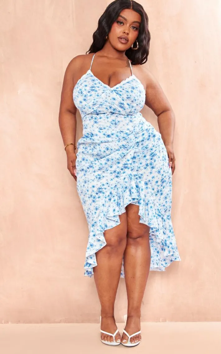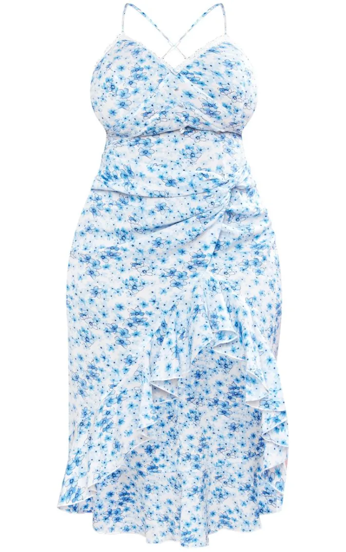 We’re totally in love with this plus blue floral print lace up back twist detail midi dress for your weekend plans. It is made from a blue floral print material with a lace-up back, twist detail and a midi length, how could you not be obsessed? This gives you endless styling potential and is bound to give your look that extra chic touch. Style seamlessly with white slip-on heels and gold accessories for a seriously luxe finish.