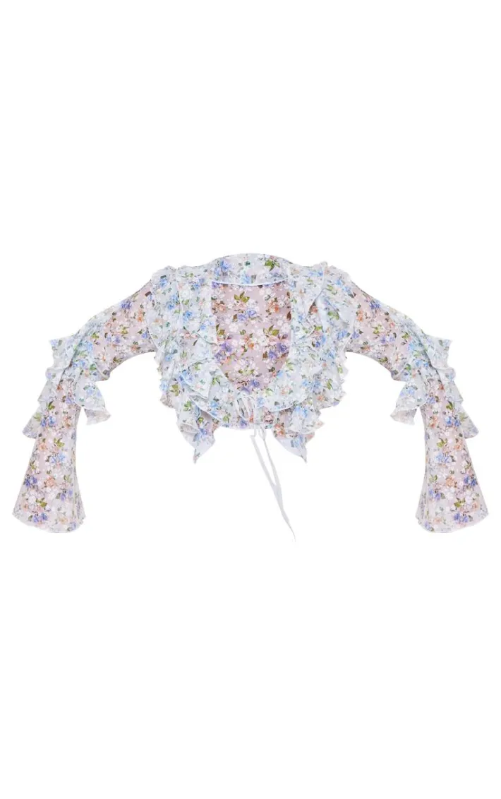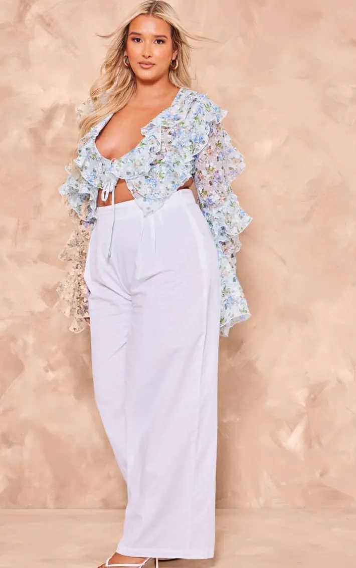 Amp up your new season wardrobe with this plus blue floral sheer woven ruffle tie crop blouse. Brought to you in a blue sheer woven material with a floral design, ruffle detail and tie fastening, this crop blouse is at the top of our wish list. Style with white bottoms, sandals and gold accessories for a look that won’t miss. We’re seriously obsessed.