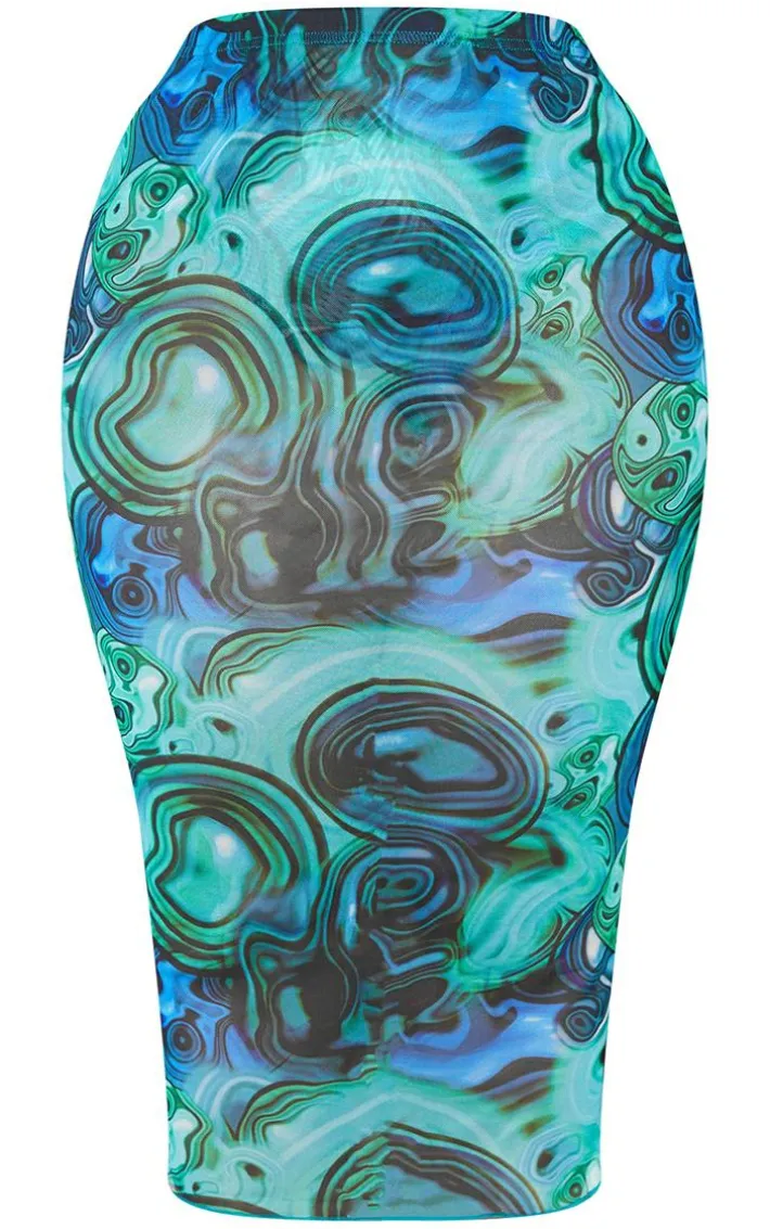 Make a statement this season with this skirt. Featuring a blue marble print mesh material with a midi length and a figure-hugging fit. Complete the look with the matching top and statement accessories for a date.