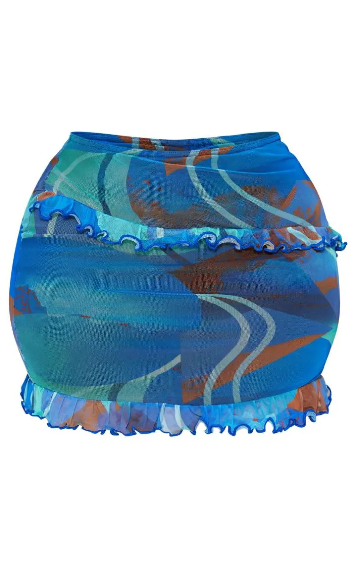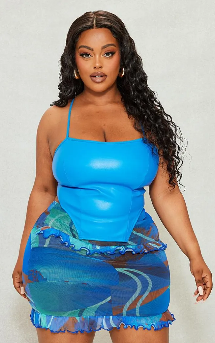 Got plansthis weekend? Then this plus blue printed ruffle mesh mini skirt is the answer to all your what-to-wear dilemmas. With a blue printed mesh material, ruffle detail and a super flattering fit, this plus mini skirt is sure to tick all your boxes. Whatever your plans are, this plus mini skirt will have you turning heads for all the right reasons. Team with a matching hue corset top, strappy heels and a mini bag for a look that everyone will love.