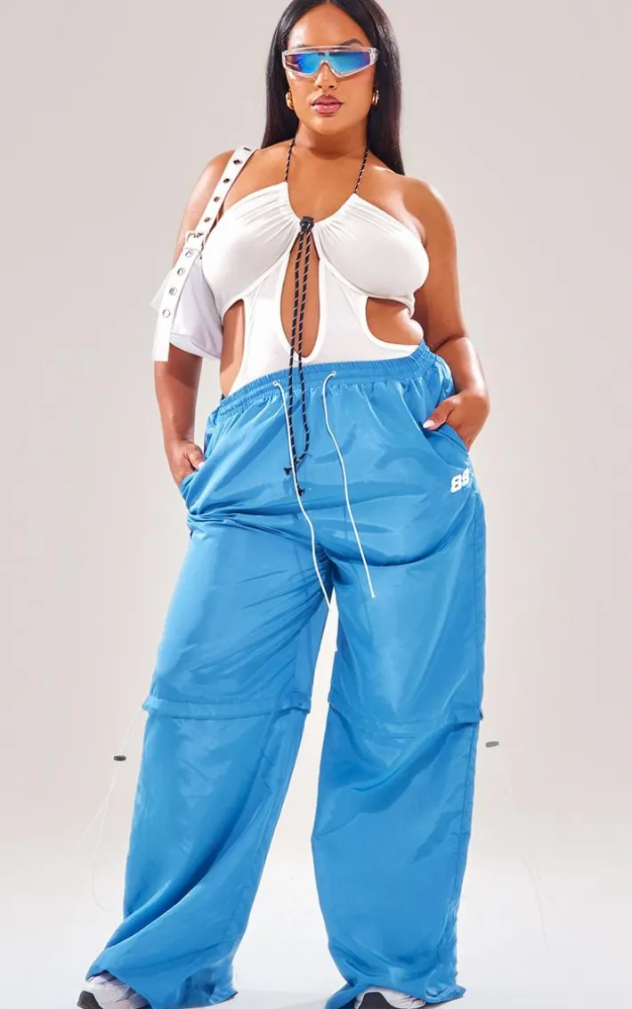 Channel the perfect new season look with these plus bright blue nylon drawstring low rise parachute cargo pants. Brought to you in a bright blue hue nylon material that is sure to brighten up any look and featuring a low rise design with drawstring detailing, how can you resist? Their parachute cargo style is sure to keep your vibe on-trend all season long. Team these cargo pants with a bodysuit, fresh kicks and staple accessories to complete the look we’re loving.