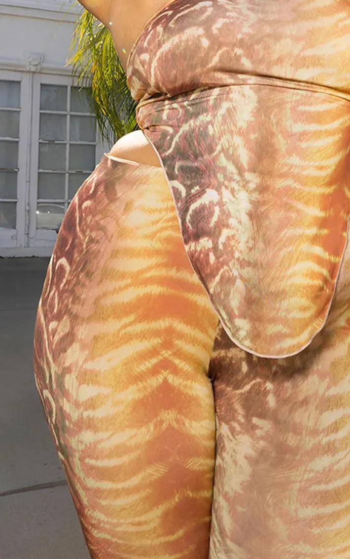 Bring some fierce vibes to your weekend wardrobe with these plus brown animal print flared pants doll. Brought to you in a brown animal print fabric with a high waist and a flared fit, what more could you ask for? These plus pants are just what is missing from your wardrobe and are sure to be your go-to for any weekend plans. Team with the matching halterneck top, clear heels and gold accessories for a glam finish worthy of all your weekend plans.