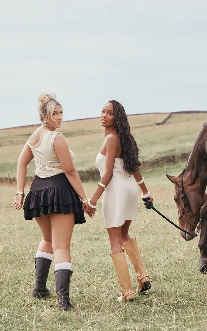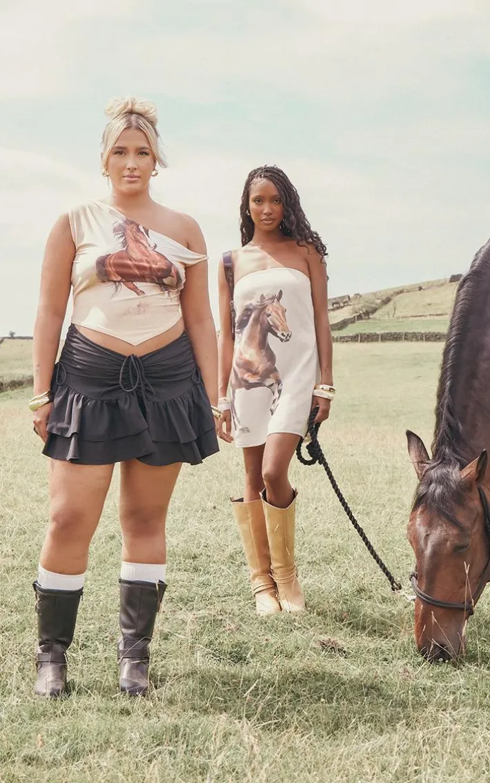 Bring all the luxe satin feels to your new season look with this plus brown horse printed slinky asymmetrical crop top. Made from a brown hue slinky material with a horse print design, an asymmetric hem and a cropped fit, we are obsessed. Style this crop top with a mini skirt, chunky boots and accessories for a look that is sure to have all eyes on you.