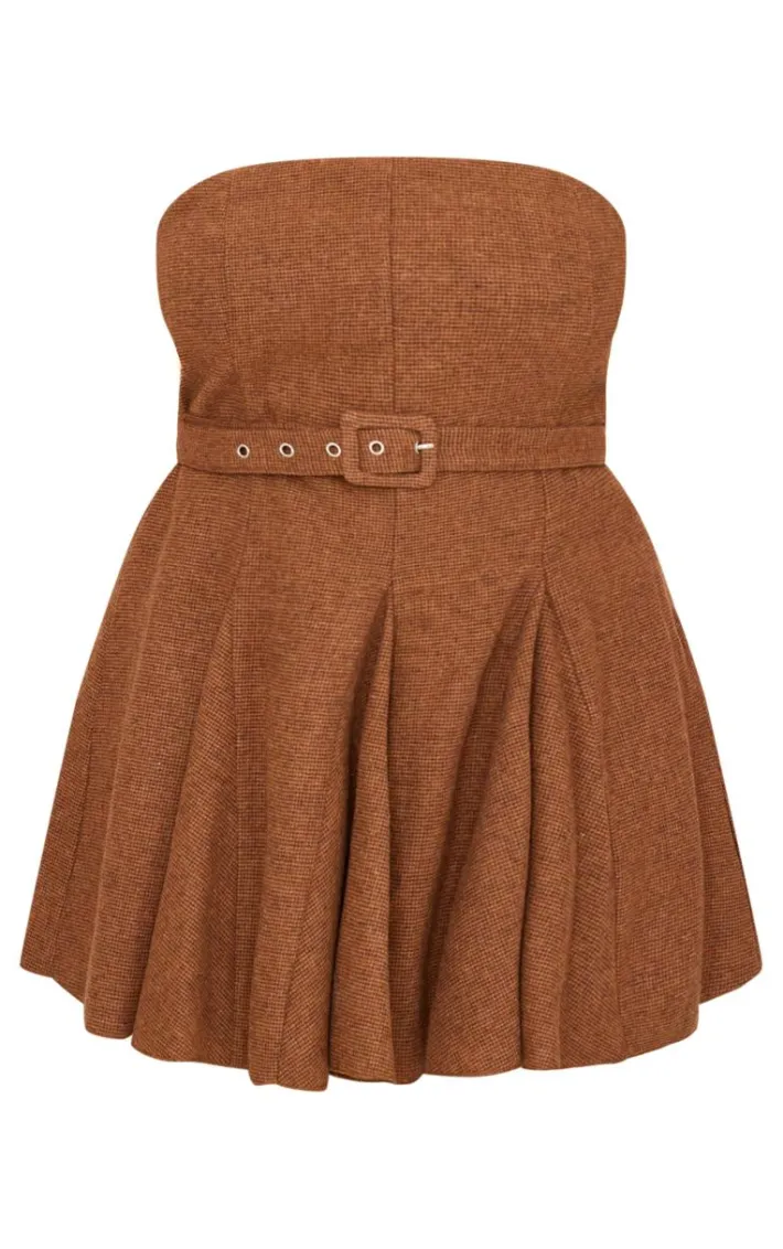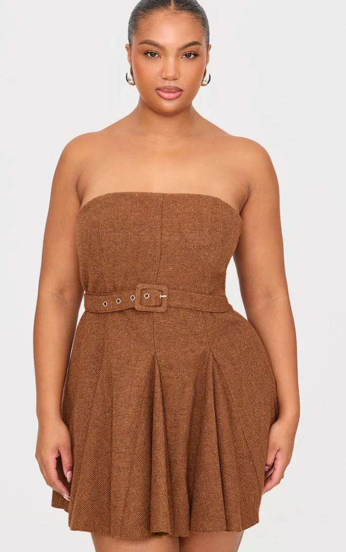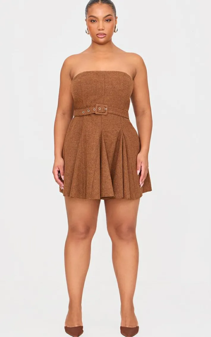 Introducing the new plus brown pleated bandeau belted mini dress, say hello to the new you. Brought to you in a seasonal brown hue, with a pleated style, flattering belted detail and bandeau design, how can you say no? Simply team with some court heels and simple accessories for a look that won’t go unnoticed.