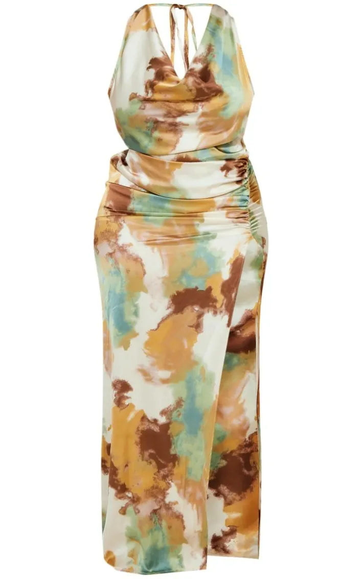 Get ready to show off your glam side in this plus brown printed satin cowl neck maxi dress, it’s a definite yes from us. This plus maxi dress features a brown printed satin material with a cowl neck design and a maxi length, how could you not be in love? Team this satin dress with clear slip-on heels and gold hoop earrings for a look everyone will want.