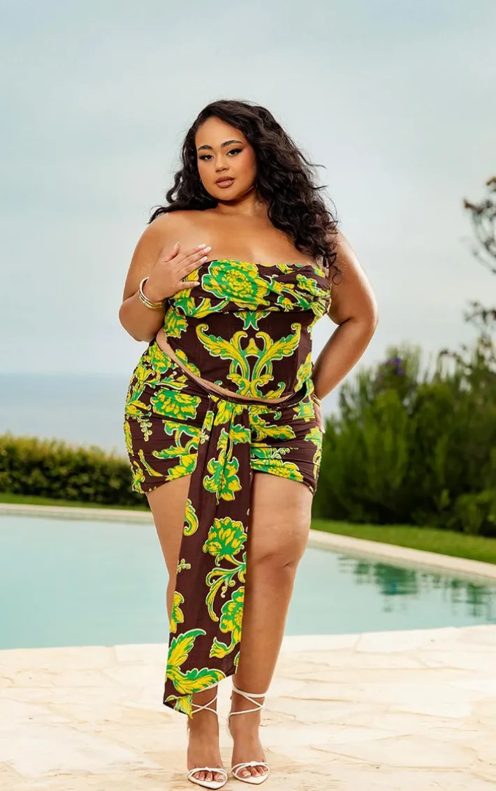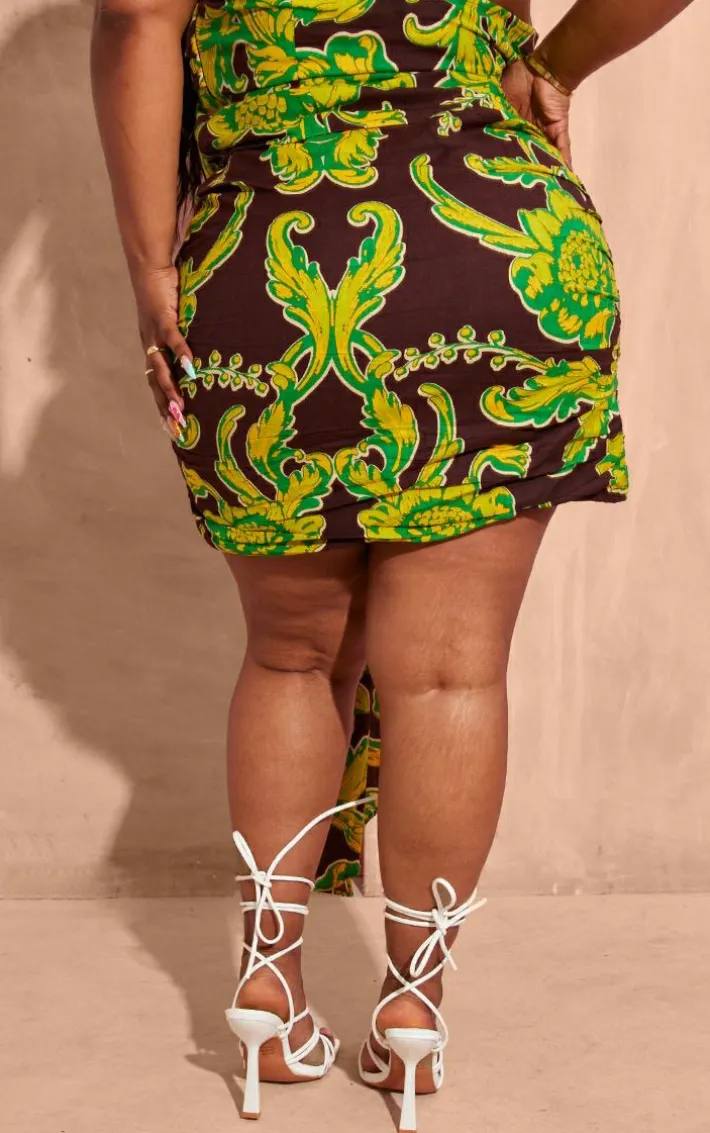 This plus brown ruched front mini skirt is perfect for your new season wardrobe. Brought to you in a brown hue material with a ruched front design and a mini length, how can you resist? Style this mini skirt with the matching top, heels and accessories for a look they won’t be able to take their eyes off.