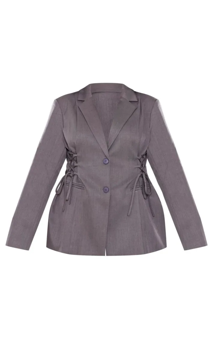 Get your glam on this season in this plus charcoal lace up waist blazer. Brought to you in a charcoal hue material with a lace up waist detail, this blazer is at the top of our wish list. Style with blue jeans, your fave heels and gold accessories for a look that won’t miss this season. It’s a yes from us.