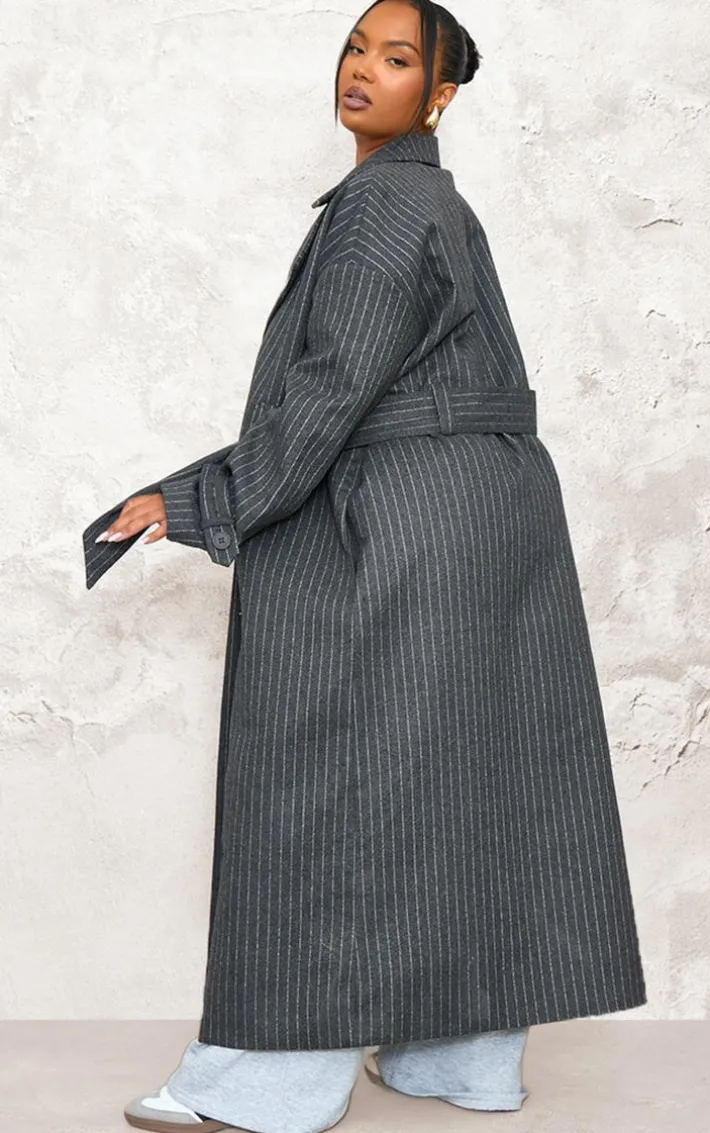 How unreal is this plus charcoal pinstripe wool look double breasted belted coat? With a sultry charcoal shade, a pinstripe design and wool look material, it’s the perfect addition to your winter wardrobe doll. The double breasted and belted details have us obsessed. Style with some chilled sweatpants, fresh sneakers and gold earrings for an off-duty vibe we all love.