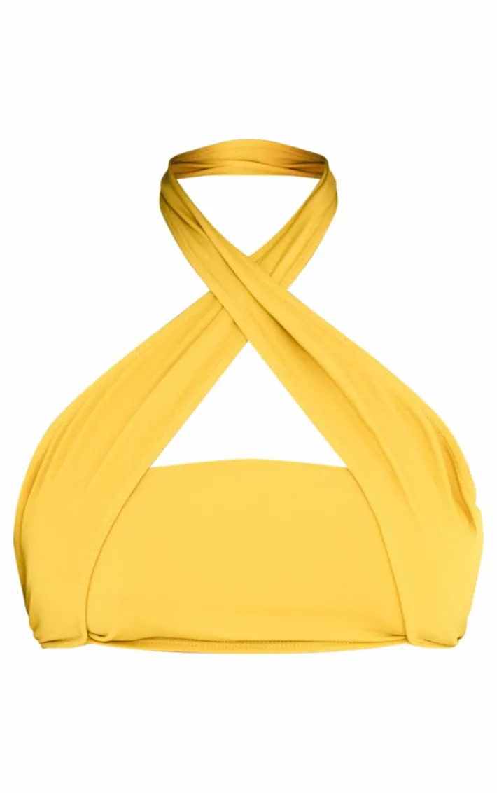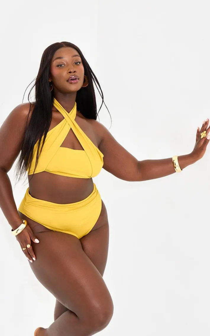 Show off your tan in this plus chartreuse halterneck wrap bikini top. Brought to you in a chartreuse hue material with a halterneck design and wrap detail, this bikini top is a must-have for those pool days and beyond. Style this bikini top with the matching bottoms and gold accessories for a look that is sure to have all eyes on you.
