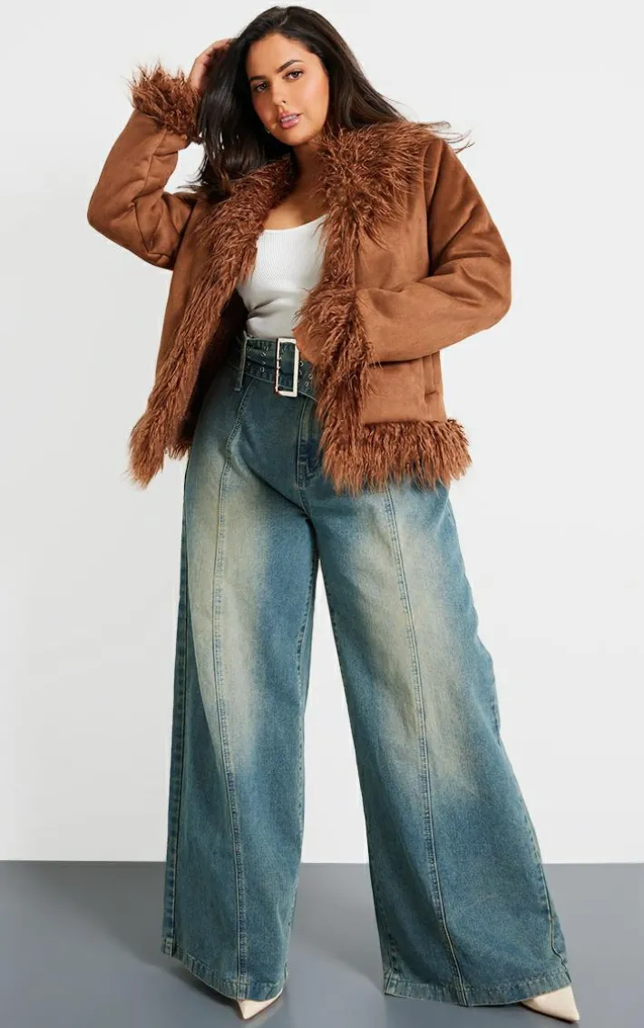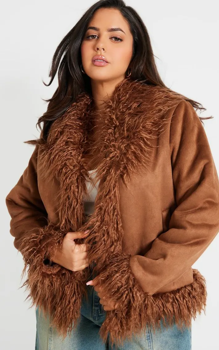 We’re seriously crushing on this plus chocolate faux suede faux mongolian fur trim jacket. Brought to you in a dreamy chocolate shade, with a faux suede material, faux mongolian fur trim detail and overall edgy vibe, we can’t get enough. Style with some faux leather pants, a white tee and heels to really nail the look.