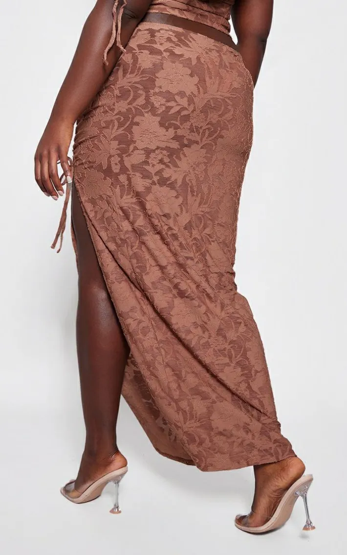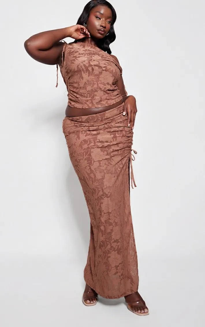 Get your glam on with this plus chocolate textured ruched midi skirt. Made from a chocolate textured material with a ruched design, you’re sure to have all eyes on you. When the weekend calls so does this dreamy midi skirt. So what are you waiting for? Shop the look and opt for the matching top and a pair of clear heels. It’s a yes from us.