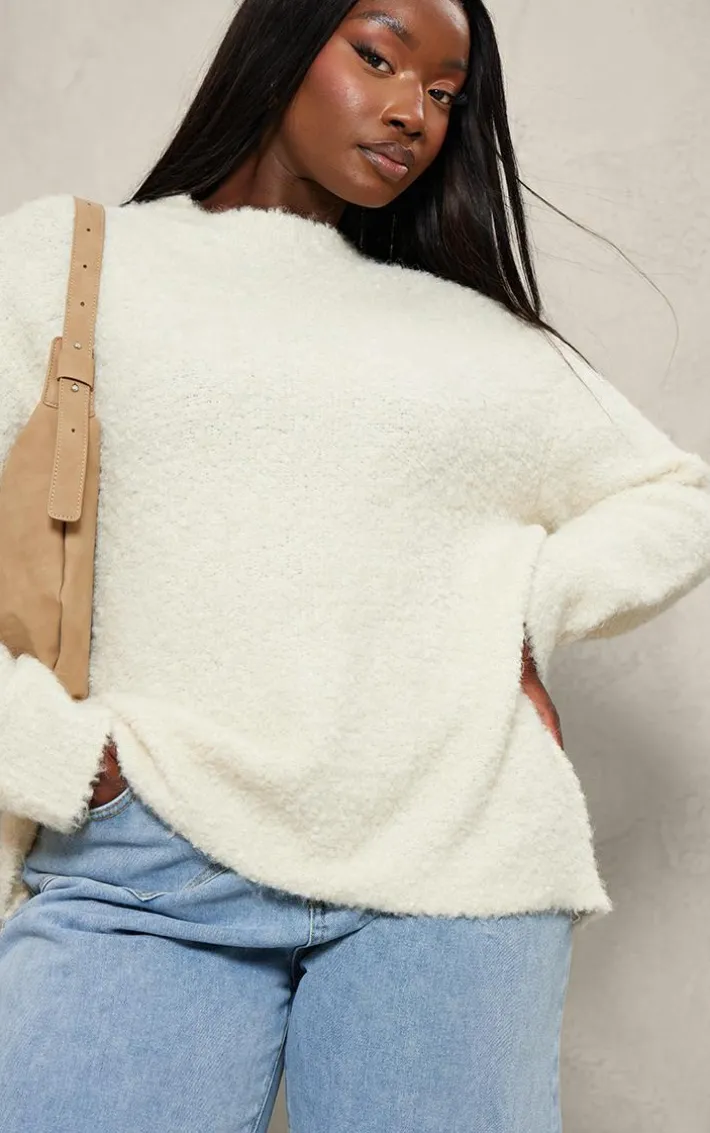 Be on trend this season with this plus cream bobble knit oversized sweater. Brought to you in a cream bobble knit material with an oversized fit and long sleeves, you will bring all the edge to your outfit of the day. This sweater is perfect for those on the go days. Team with denim jeans, chunky boots and accessories to be the Center of attention wherever you step foot this season.