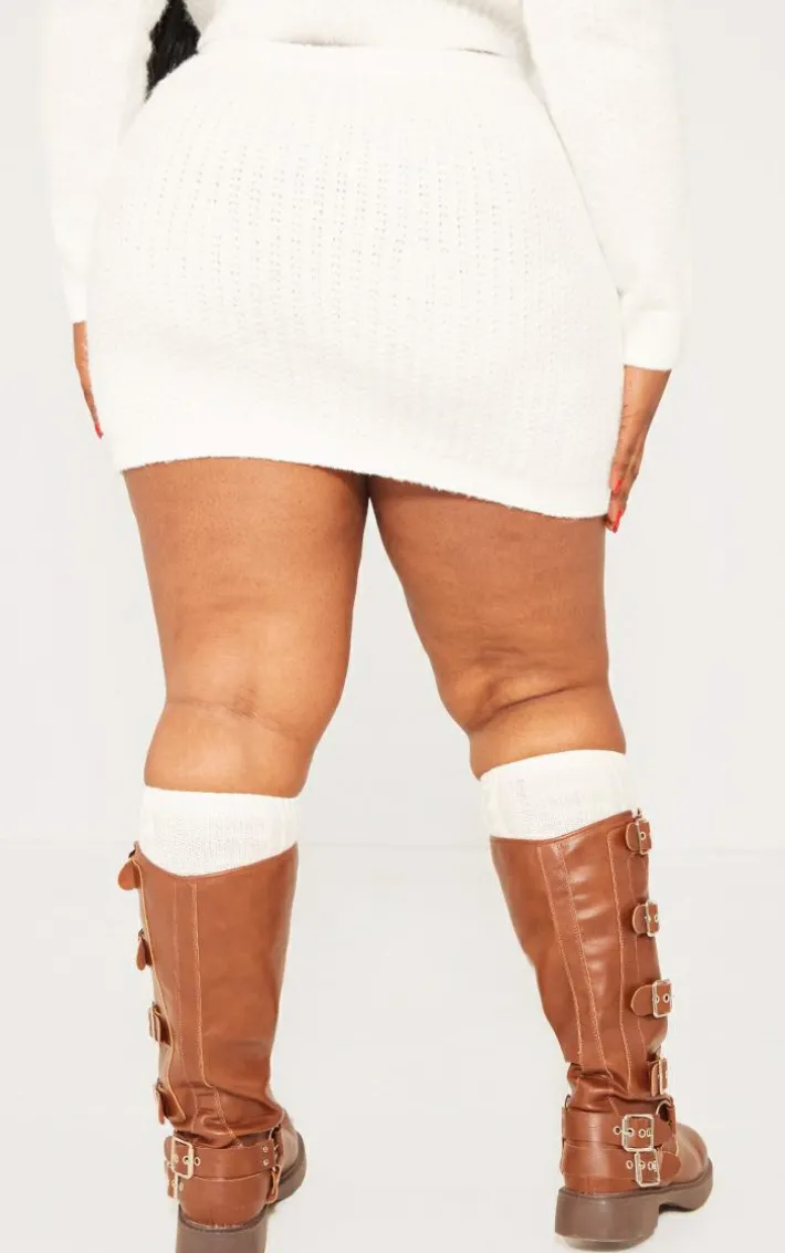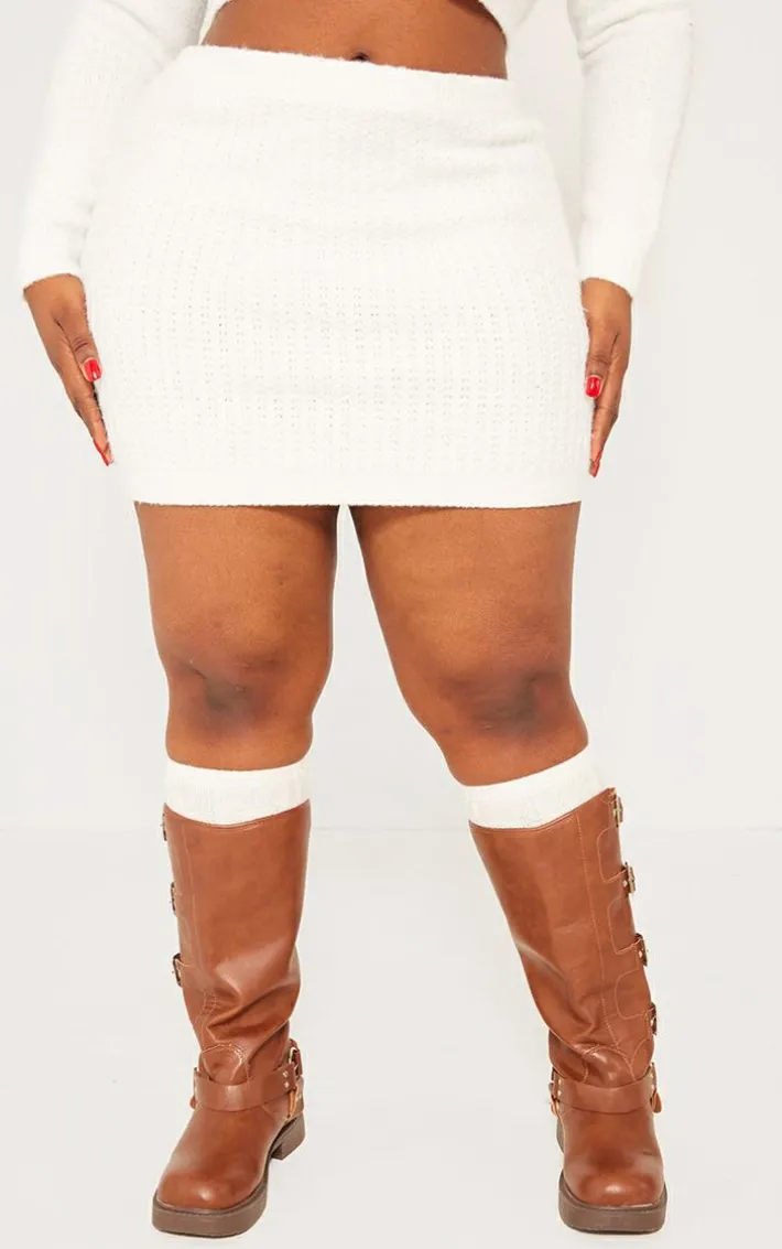 Turn heads this season with this plus cream brushed knitted mini skirt. Brought to you in a cream brushed knitted material with a mini length, we are obsessed. Its effortlessly chic style will make you the center of attention no matter what. Team with the matching top and a pair of knee high chunky boots for a fool proof finish that will earn you all the likes.