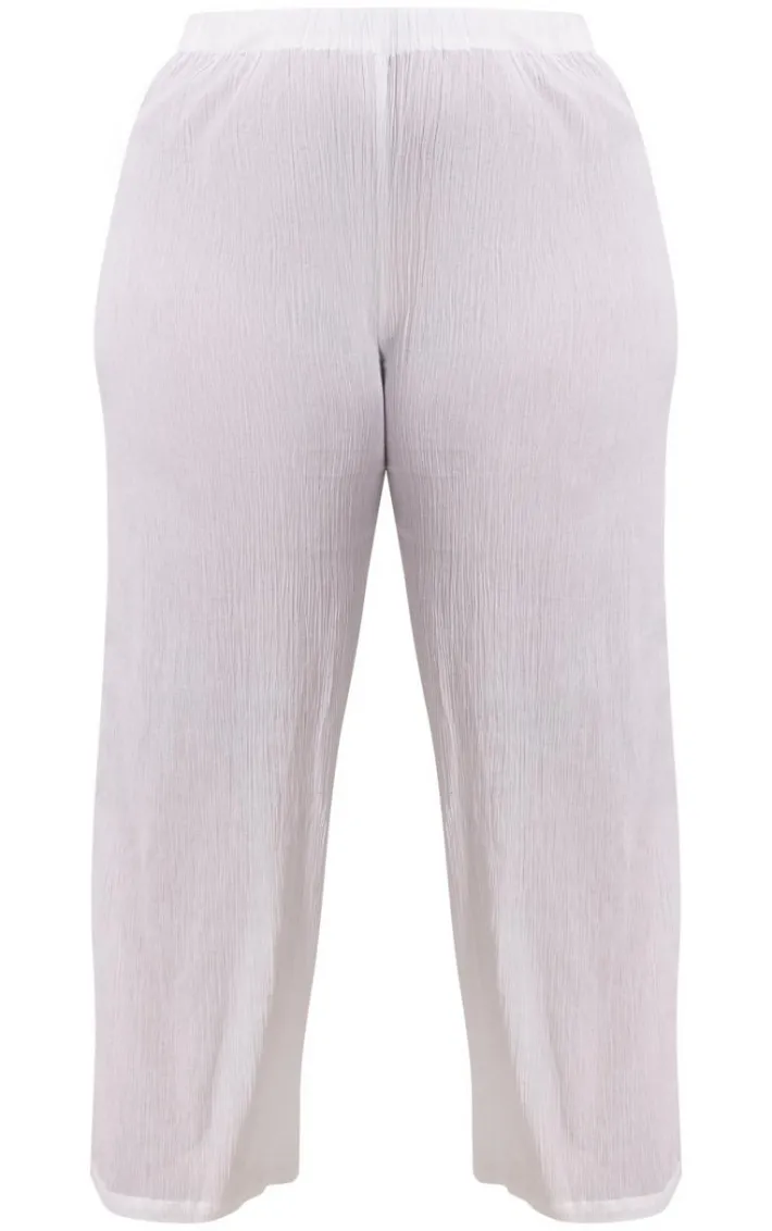 Add some drama into your weekend wardrobe with these plus cream cheesecloth textured wide leg pants. Brought to you in a cream cheesecloth material with a textured design, we are seriously obsessed. With it’s wide leg fit, you’re sure to have all eyes on you. To complete the look style with some clear heels and the matching top for a date night look.