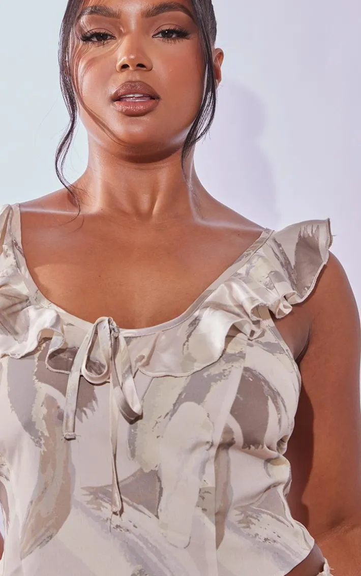 We’re obsessed with this plus cream mark printed ruffle scoop neck top for your weekend wardrobe. Its cream mark printed material adds an instant touch of luxe to your look whilst its ruffle details brings all the glam vibes. This plus top also features a scoop neckline, longline length, and a cross back design which makes it perfect for any of your weekend plans. Team with the matching skirt, clear heels and simple accessories for a flawless finish.