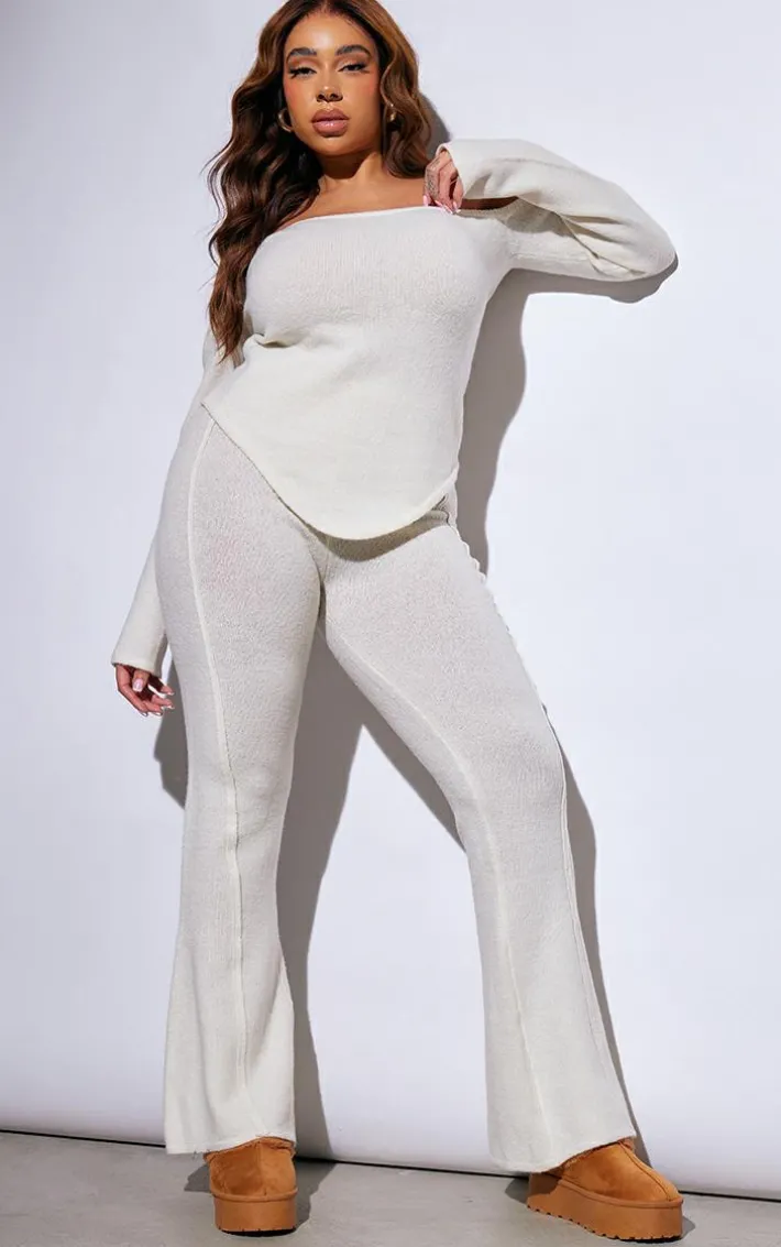 We’re totally obsessed with these plus cream marl knit wide leg pants for your off-duty wardrobe. They are made from a cream marl knit material and feature a wide-leg fit which bring all the comfy vibes to your look. These plus pants are super easy to dress up or down for any occasion and we know you will be just as in love with them as we are. Team with the matching top and comfy boots for a flawless finish.
