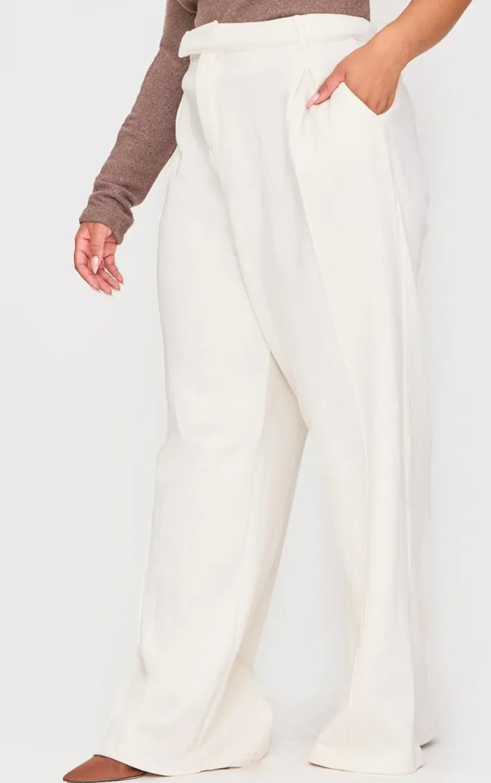 Add a touch of chic to your new season wardrobe with these plus cream pintuck tailored sweatpants. Brought to you in a cream hue material with pintuck detailing and a flattering tailored fit, how can you resist? Style these tailored sweatpants with a one shoulder design and court heels for a look that is sure to have all eyes on you.