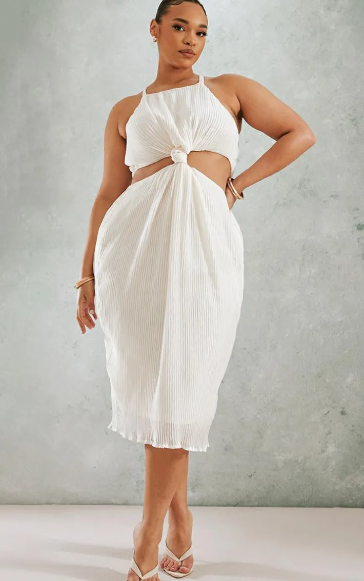 Your what to wear dilemmas have finally been found with this plus cream plisse knot detail midi dress. Brought to you in a cream plisse material with knot detailing and a midi length, what more could you want? This midi dress will have you earning all the style points. Shop the look and team this with your dreamy high heels and accessories for a look like no other.