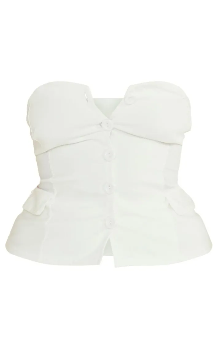 Your new season saviour has finally arrived with this plus cream stretch woven bandeau top. This women’s bandeau top wont let you down. Brought to you in a cream woven stretch material with a button-up front, how could you say no? To level up the look pair this with the matching bottoms, high heels and your statement accessories for a weekend worthy combo.