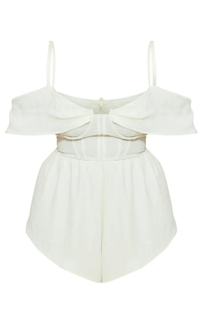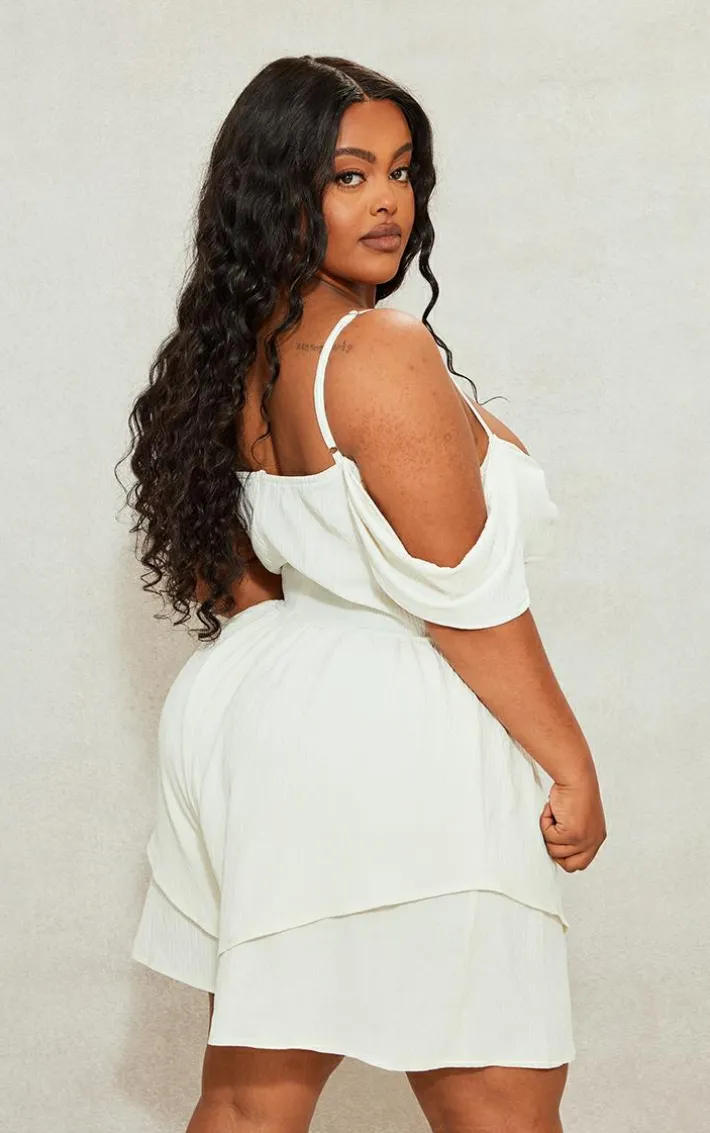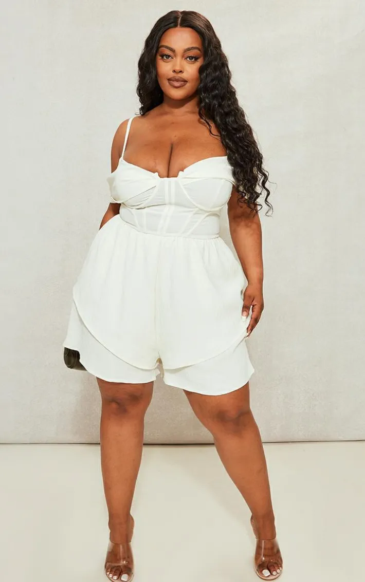 Take on your weekend the right way with this statement plus cream textured corset romper. This romper is made from a cream hue textured material, it’s everything we’re loving and more. With It’s figure-hugging fit that is sure to hug you in all the right places, we are obsessed. Style seamlessly with your clear high heels and gold accessories for a look that will secure you all the likes.