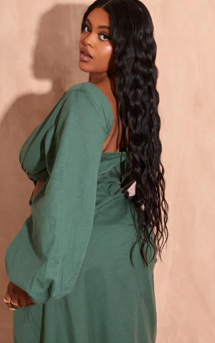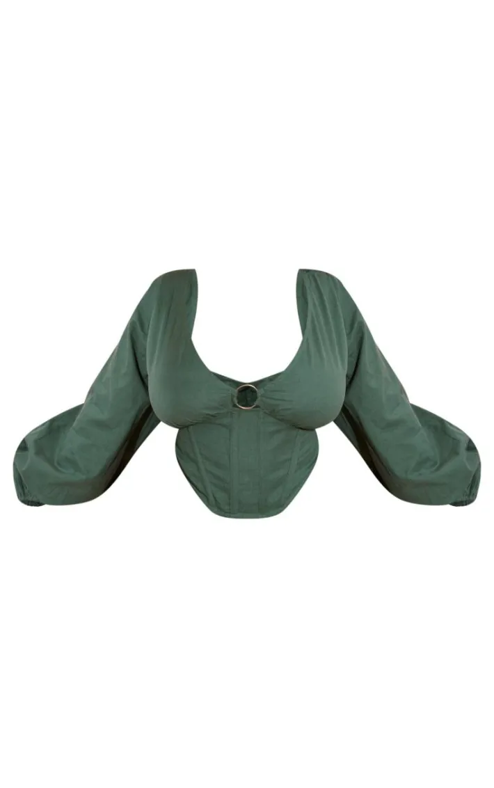 We’re totally in love with this plus dark green ring detail boning long sleeve bardot top for your weekend plans. It is made from a dark green material with ring detail, long sleeves and boning detail, how could you not be obsessed? This bardot top gives you endless styling potential and is bound to give your look that extra chic touch. Style seamlessly with the the matching skirt, clear heels and gold accessories for a seriously luxe finish.