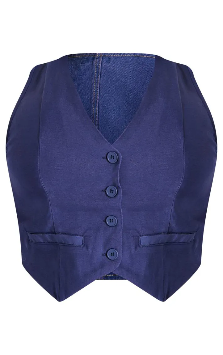 Up your style game in this plus dark indigo denim contrast tailored vest. With a dreamy dark indigo hue, a denim material and a contrast tailored design, we can’t stop thinking about it. Style with the matching pants and fresh kicks for a look that will turn heads wherever you go.
