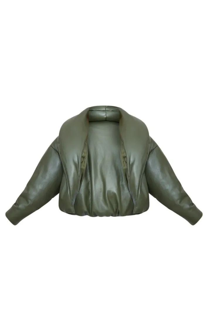 Say hello to your new season staple with this plus dark khaki exaggerated collar PU cropped puffer coat. Brought to you in a dark khaki PU material with an exaggerated collar design and a cropped length, this puffer coat is all you need to feel comfy this season. Team with some simple accessories and a pair of grey sweatpants an off-duty look we are loving.