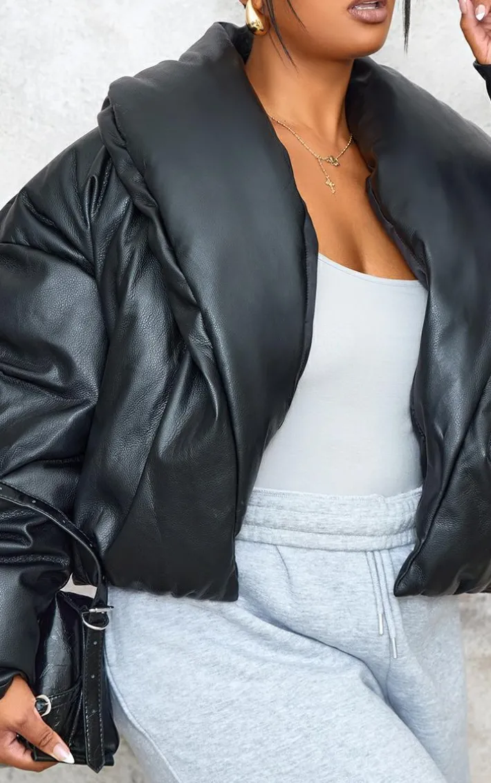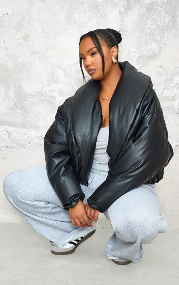 This plus deep black exaggerated collar PU cropped puffer coat is calling your name. The staple deep black shade, exaggerated collar detail and must have PU material are all details that can’t be ignored. Style with a chilled sweatpant and Vest top combo, fresh kicks and sunnies to be at the top of your style game.