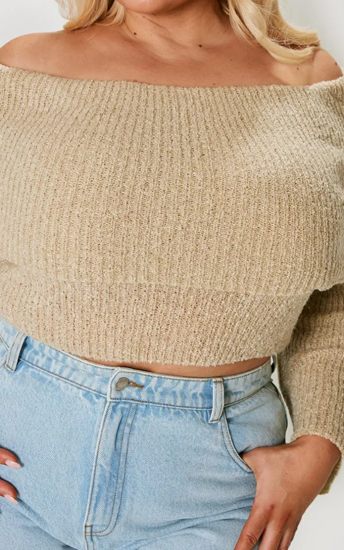 Say hello to your new season staple with this plus deep nude bardot boucle knit crop top. Brought to you in a deep nude boucle knit material with a bardot design, how could you say no? With its cropped length, you will not blend in. Style effortlessly your trusty jeans and heels for a an effortlessly chic combo that will turn heads for all the right reasons.