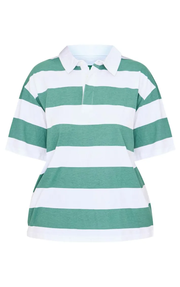 We’re loving this plus green chunky striped collared oversized T shirt for the ultimate day time look. Brought to you in a statement green shade, with a luxe chunky striped design and collared detail, this T shirt is a must have. Style with a pair of jeans and sneakers to finish off the look.