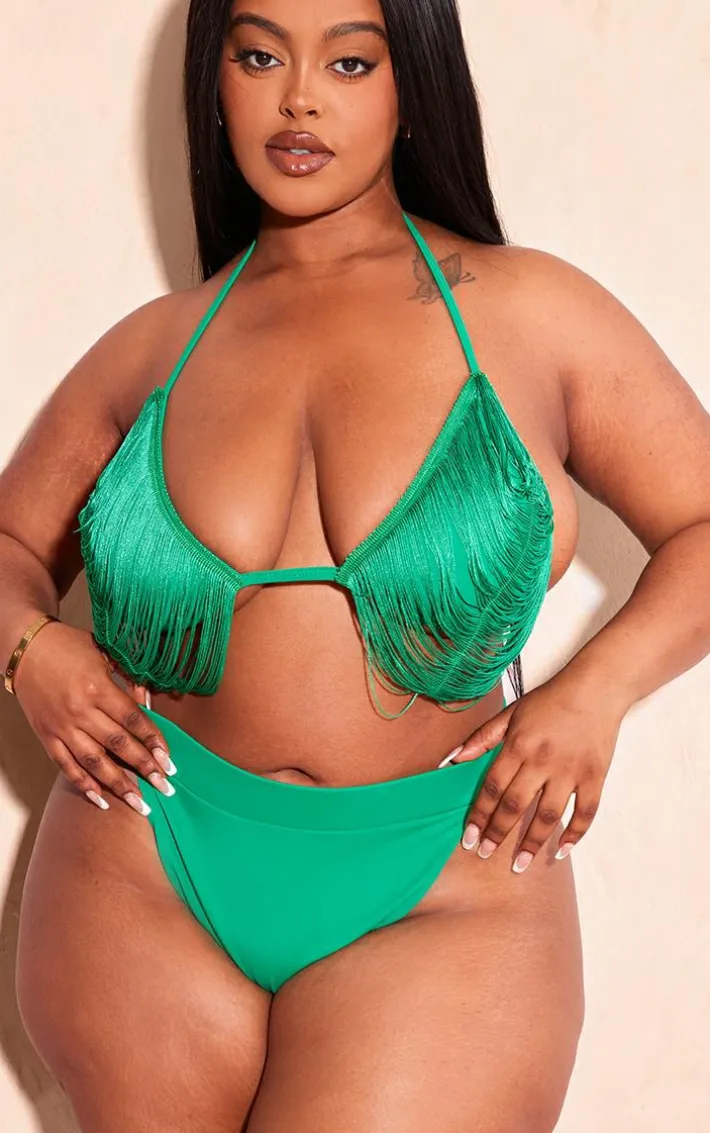 Add some bold hues to your vacay wardrobe with these plus green high leg bikini bottoms, they’re a definite yes from us for those poolside days and beyond. These bikini bottoms feature a green material with a high leg design and a flattering fit. Pair these plus bikini bottoms with the matching top and your go to accessories for a flawless finish.