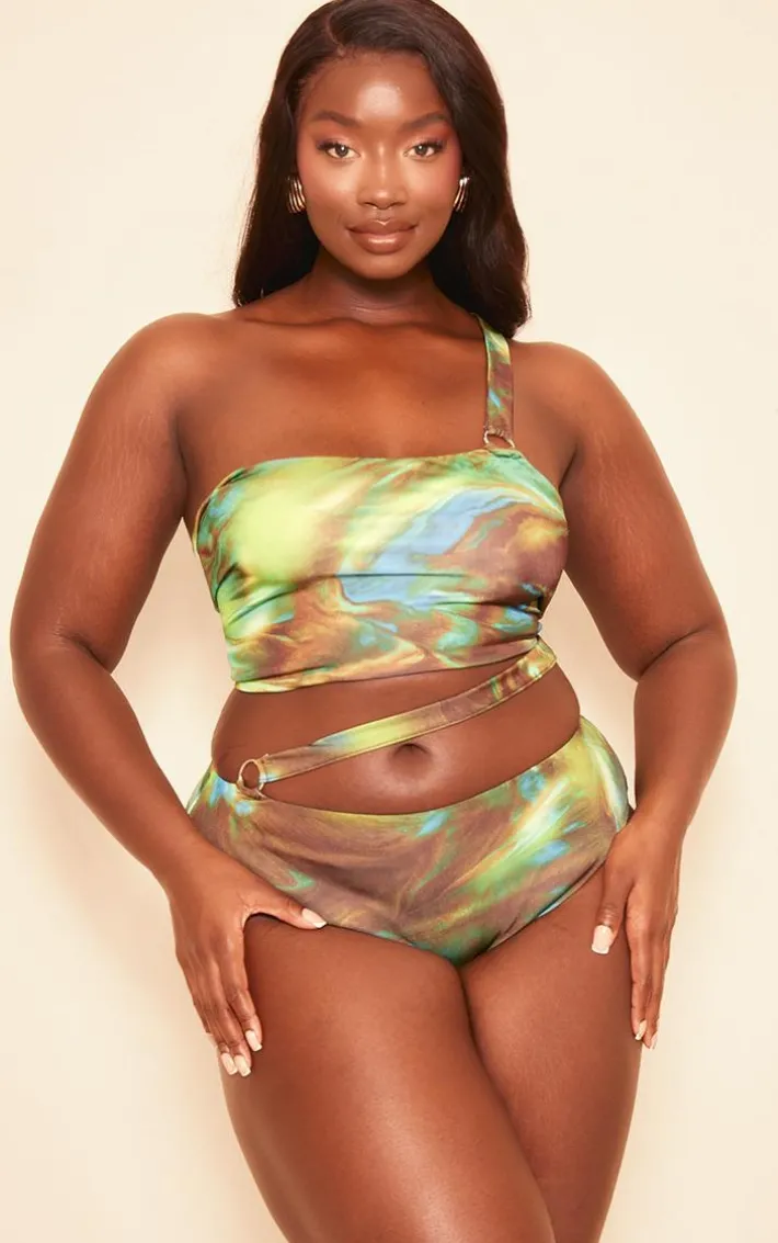 Inject some bold prints into your vacay wardorbe with these plus green printed O ring detail bikini bottoms. Brought to you in a green material with a printed design and O ring detailing, how can you resist? Pair these bikini bottoms with the matching top and gold accessories for a poolside look that is sure to make you stand out from the rest.