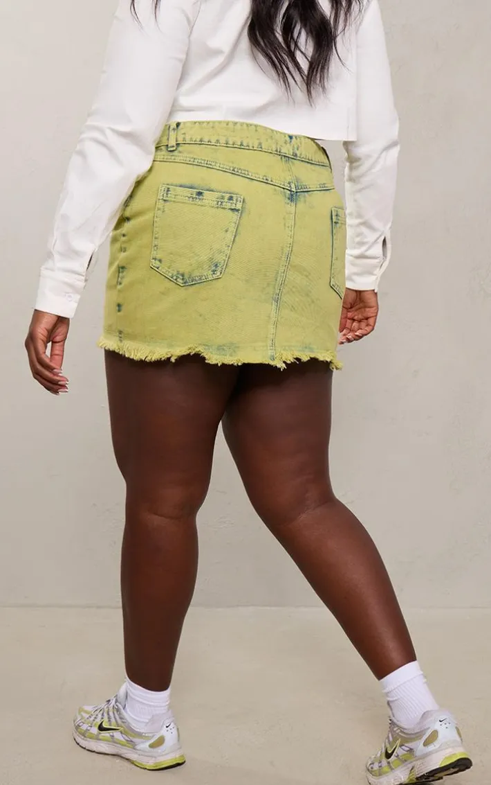 Take on your weekend the right way with this statement plus green tint acid wash raw hem mini skirt. Made from a green tint acid wash material with a raw hem detail, this is everything were loving and more. With its figure-hugging fit, this unreal plus mini skirt is sure to hug you in all the right places. To complete the look style this seamlessly with a crop top and a pair of comfy sneakers for a look that will secure you all the likes.